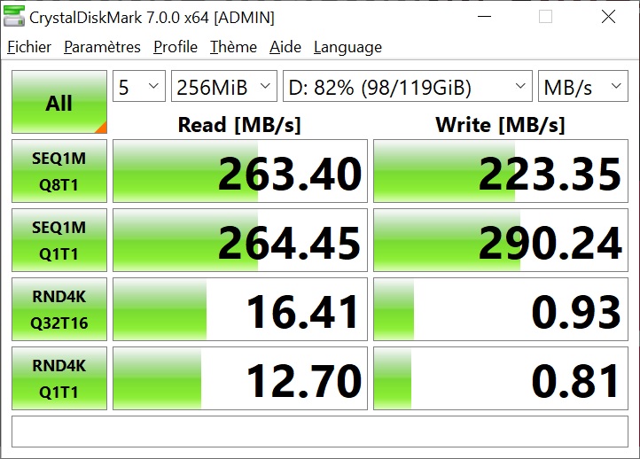 Débits max écriture 260 Mo/s