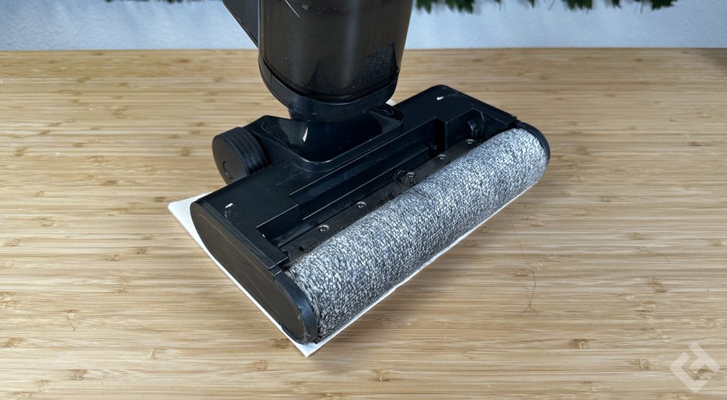 Ici, les performances de lavage sont satisfaisantes ! L’aspirateur n’oscille pas forcément entre un lavage plus ou moins intensif toutes les 10 secondes, ce qui n’est pas une mauvaise chose. Le mode intelligent adapte parfaitement son nettoyage grâce au capteur infrarouge, pour détecter les éclaboussures humides et les saletés sèches, par exemple.